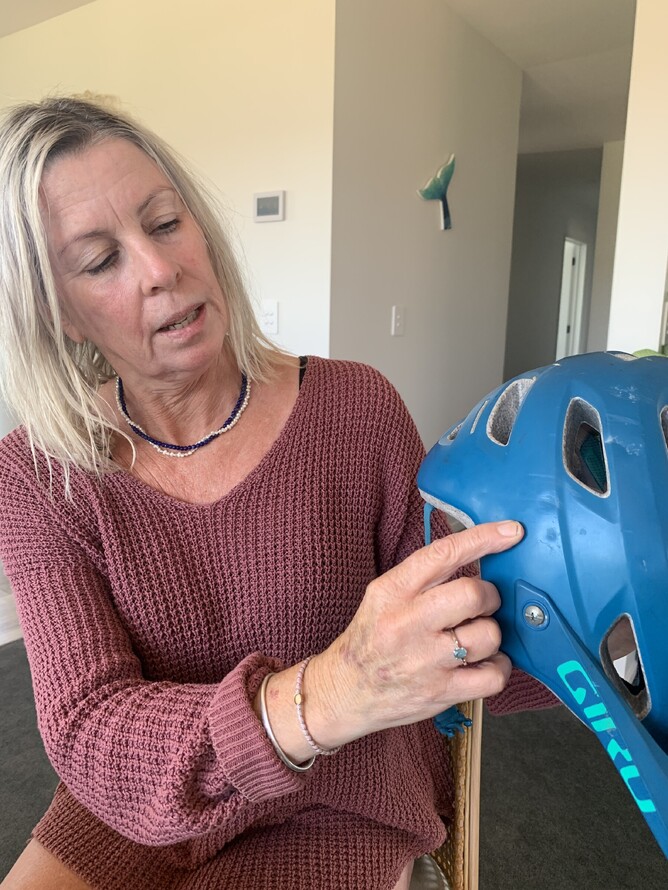 As Andrea reflects on that day, she knows her helmet saved her life. She’s amazed there’s only a slight dent on her helmet after the accident.