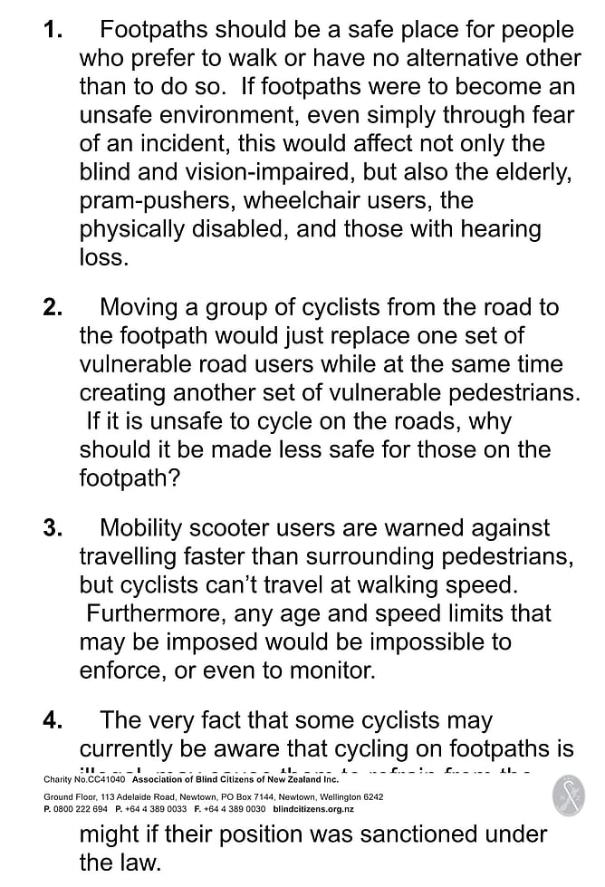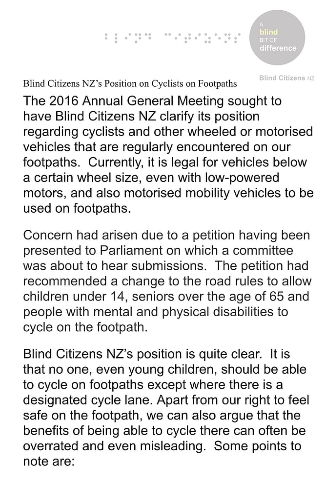 Now with the popularity of e-bikes and e-scooters there is even more concern within the visionally impaired community as to the direction the Minister of Transport and roading authorities will take in June 2026.
