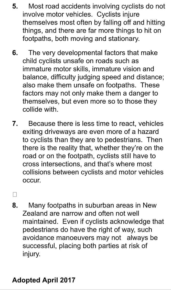 According to NZTA documents, young cyclists face higher risks when riding on the road and many children already ride on the footpath despite it being illegal to do so.